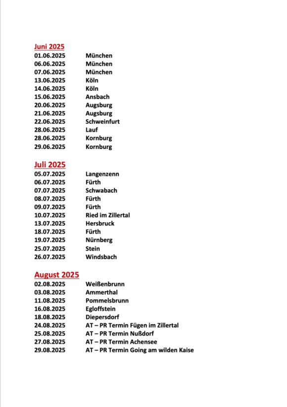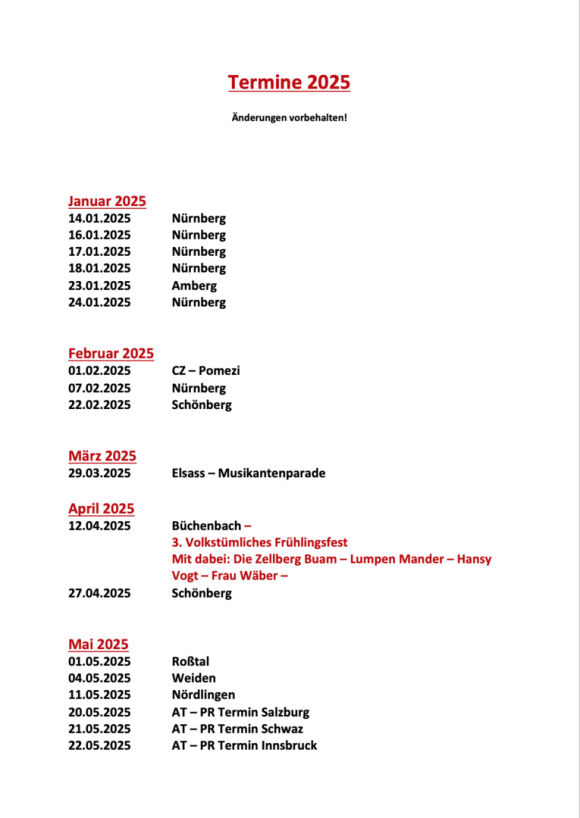 Aktuelle Anfragen werden noch nicht online gestellt. Bei Interesse einer Buchung bitte unter 09628-1368 oder das Kontaktformular benutzen. Es werden alle Termine monatlich online gestellt.